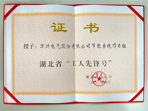 日前,從湖北省總工會獲悉,萬洲電氣節(jié)能系統(tǒng)項目組被授予“湖北省工人先鋒號”榮譽稱號。