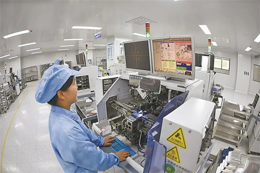 8月2日,在湖北云川光電科技有限公司(簡稱云川光電)車間,工人正在生產(chǎn)電子元器件。