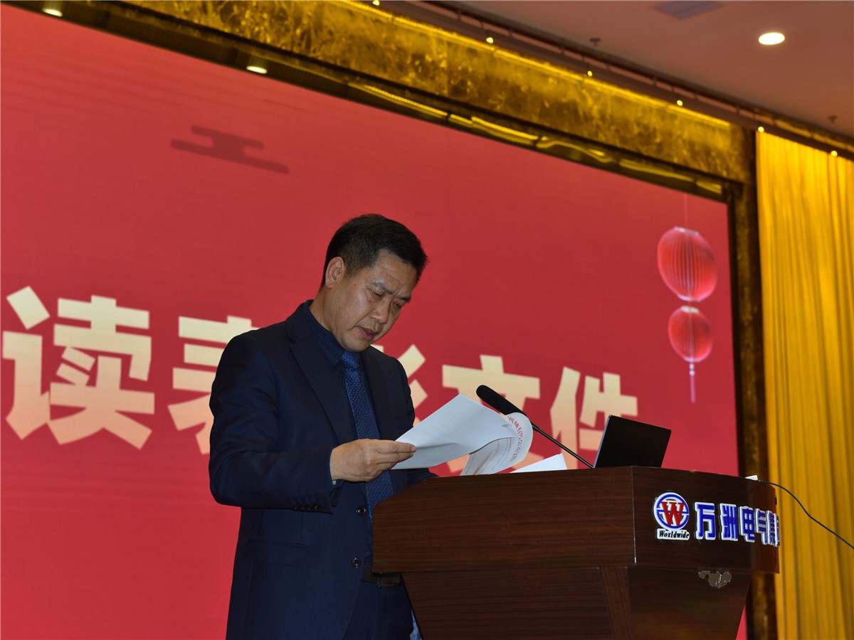 回首往昔、總結奮進。李總首先宣讀了萬洲電氣先進個人、先進團隊、銷售獎勵等表彰文件,通報了2024年銷售員銷售業績和工資收入等,各類先進和年入百萬的銷冠贏得大家熱烈掌聲。隨后,邦總宣讀了萬洲機械、云川光電、萬州光電各類表彰文件。據統計,此次集中表彰,萬洲集團累計頒發經營管理、科技創新、市場開拓等先進獎項近兩百萬元。