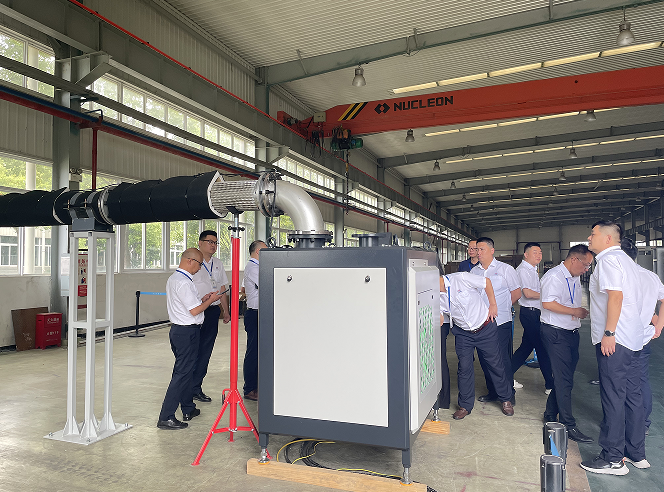 隨后,大家來到車間,現場學習觀摩磁懸浮風機模擬運行情況,參訓人員仔細觀察設備,相互交流討論,學習勁頭十足。