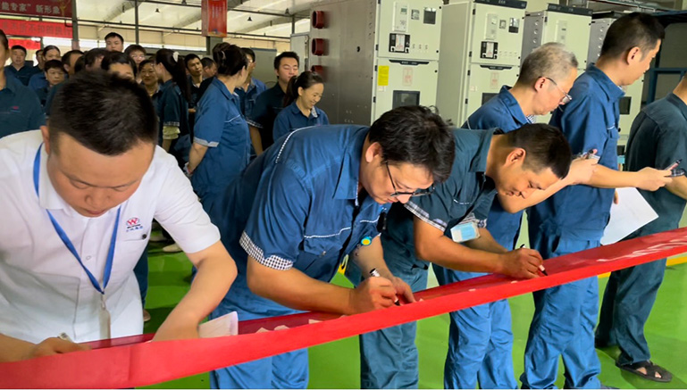 活動前,熊主席代表萬洲工會鼓勵大家以賽促學、以賽提能,希望通過比賽,能夠提升生產人員的技能水平,能夠傳承和創新萬洲產品工藝、質量,能夠涌現出一批生產能手和技能先鋒,并預祝參賽選手賽出成績、賽出水平、賽出風采。隨后,生產部主管方博宣讀了競賽規則和比拼標準。在競賽活動簽名儀式環節,7名評委和全體生產員工依次簽名,簽下了評委對競賽活動公正、公平監督的承諾,也簽下了參賽選手提升技能、爭當先鋒的勇氣和信心。