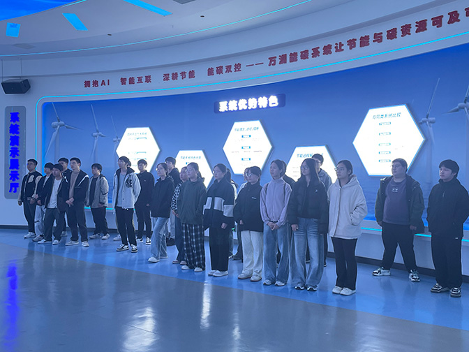 實習(xí)第一天,同學(xué)們首先參觀了公司廠區(qū),在一樓文化展示廳,創(chuàng)立之初的使命擔(dān)當(dāng)、以人為本的企業(yè)文化、碩果累累的國牌榮譽、深耕節(jié)能的行業(yè)標桿,通過參觀讓同學(xué)們對萬洲有了全方位認知。在WOES節(jié)能系統(tǒng)演示廳,萬洲重大科技創(chuàng)新產(chǎn)品——智能優(yōu)化節(jié)能系統(tǒng)的研發(fā)歷程、優(yōu)勢特色、應(yīng)用領(lǐng)域及未來發(fā)展吸引了同學(xué)們駐足觀看,并饒有興趣地現(xiàn)場體驗操作系統(tǒng)。