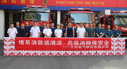 炎炎夏日送清涼,絲絲關愛入心田。7月24日下午,萬洲電氣黨委、工會、安委會組成的聯合小分隊來到襄陽市消防救援支隊參觀交流,并送上防暑降溫物資,為奮戰在一線的消防戰士們送上夏日的涼爽。