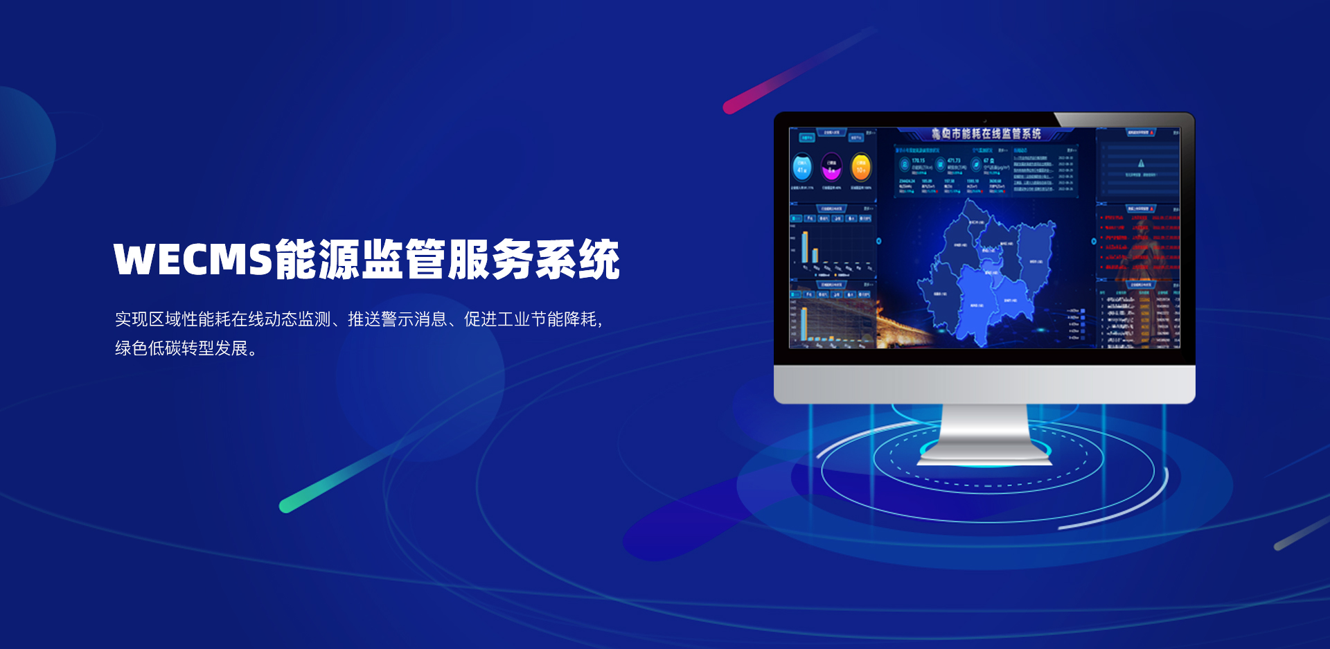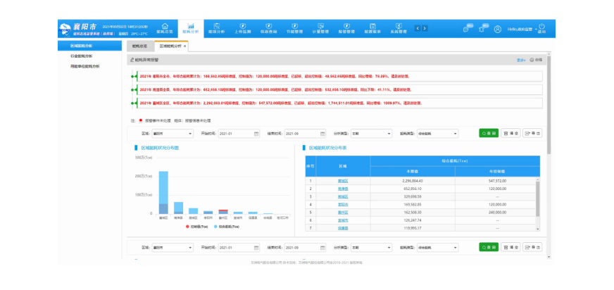 利用系統中的能耗數據結合系統功能,幫助職能部門及時了解全市的能耗使用情況,并及時發現某縣市區的能耗異常,通過系統后臺多維度的分析,結合區域和行業的標準,建立能耗報警和預警體系,為政府決策、行業監管、能耗預警分析提供數據支撐,為調整全市的用能做數據指導。