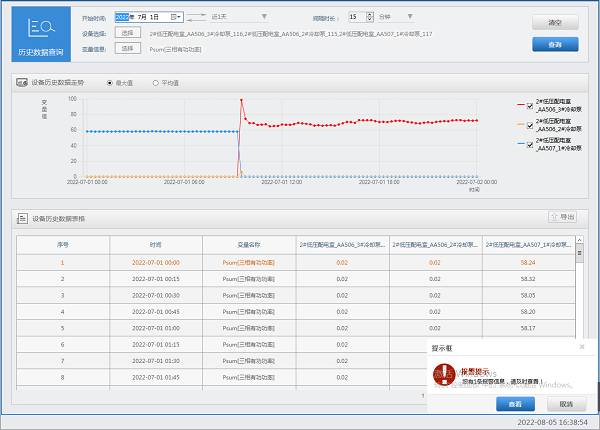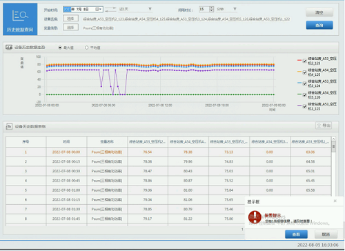 可以查詢設備如變壓器、空壓機的歷史運行數據,便于分析設備運行十分正常,以及了解設備的運行趨勢。